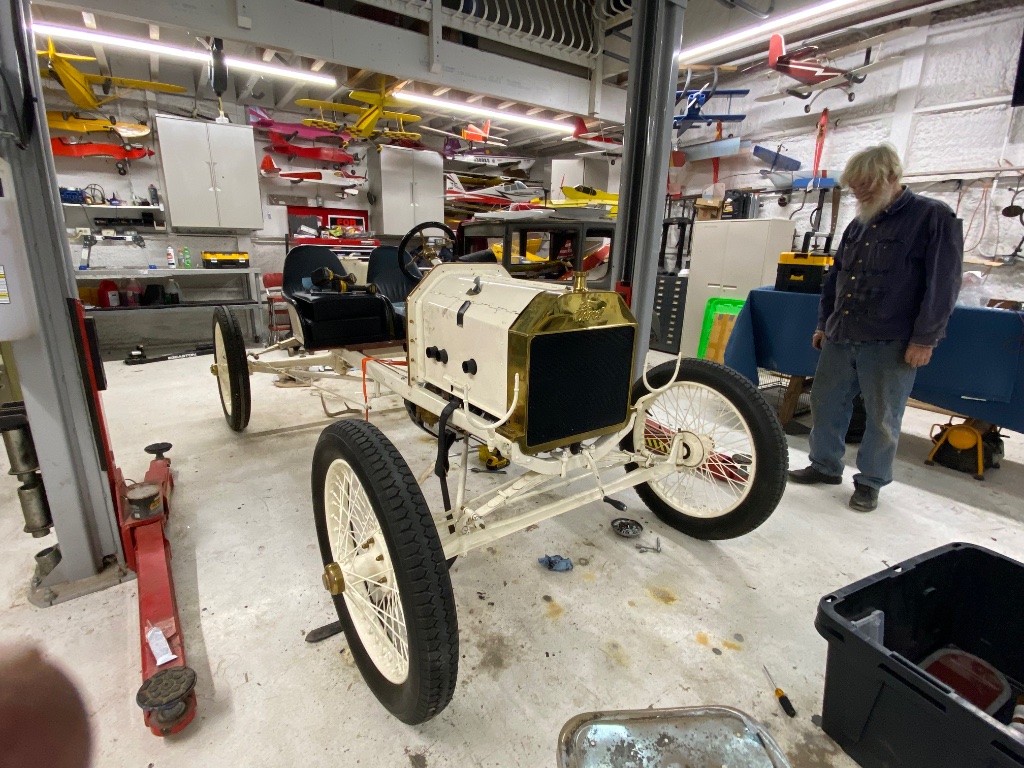 Working at Dean’s on the 1910 Ford Special racer