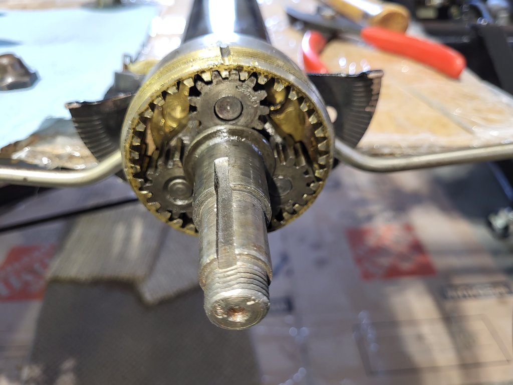 The last photo shows the new shaft, gears, bottom bracket with new bushing, and new pitman arm.
