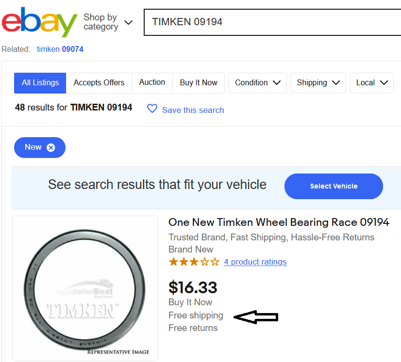 I did a comparison for TIMKEN 09194 - plus shipping,