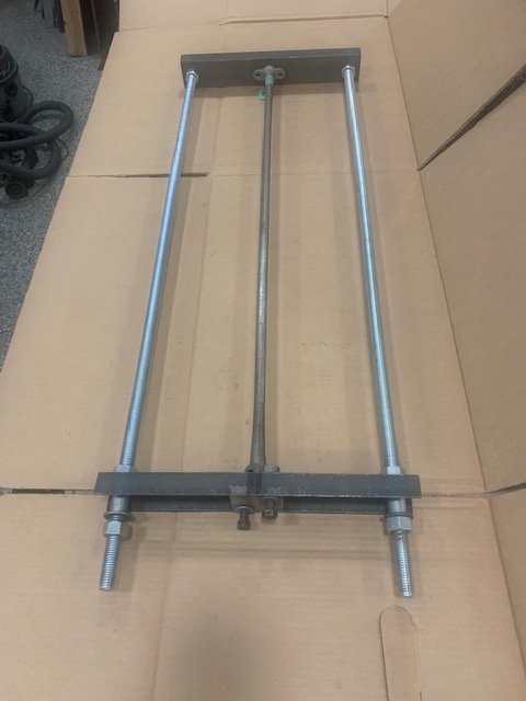 I want to share what I have been doing with drag links. I made two tools that work for me. It may take more than one posting. The drag link ends are supposed to be 45 degrees to each other and the faces parallel. Never pound the rod to straighten it as that may work harden it or otherwise change its constitution. First, I use the bench mount jig to straighten the shaft by using a basic black spray paint to shadow, and a long sanding block to show discrepancies, over and over again. The small blocks are moved narrow or wide to match the need for each correction. After I have the rod straightened, I use the frame for aligning the ends. I used some channel iron and all thread to make the frame. One end is fixed (those nuts are always left tight) and the other is for the work. First, to twist the rod rotationally and to parallel the ends, I install the rod and tighten the 3/8" bolts on both ends, I move the outer end nuts touching but not tight. Then I lay it on the bench and twist it to get it flat when relaxed. Then I use the adjustable end nuts to push the rod end out into parallel. I found it is better to push out to parallel the end rather than pull in. You can then switch the mounting to true the opposite end.