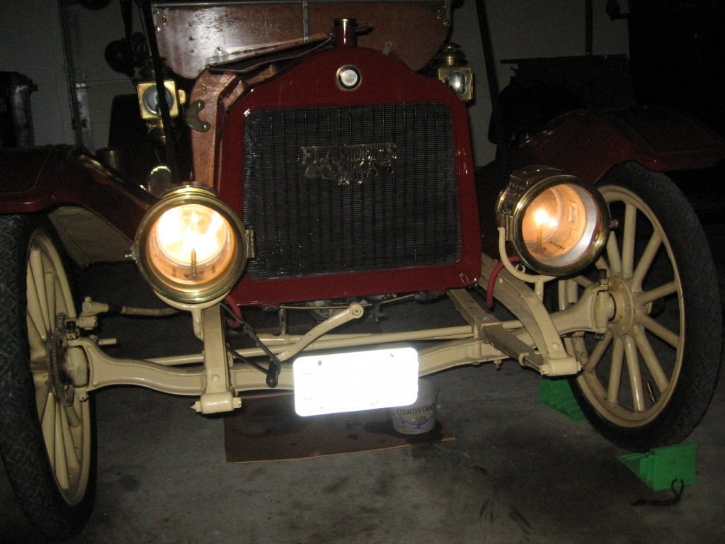 A bit OT, but here are a few pictures of the lamps lit on my 1912 Flanders. Note that the burners are oriented so that the "Y" faces parallel to the axis of the car. A lot of folks orient them so that you can see the "Y" from the front, this is incorrect.