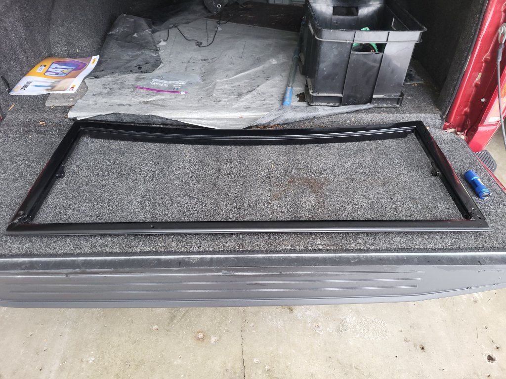 Each screw passes through the front fold of the frame, then the large hole in the tab, then it looks like it just threads into the rear of the frame like a self-tapping screw. On my car these look a little chewed up, so I may have to look into adding a thin nut or similar between the rear fold of the frame and the rubber seal.