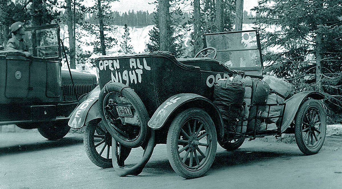 I have posted this photo from my Father's collection before and seen it in other places. Tourists "Making Do" with a sense of humor. Perhaps College Kids. The rear plate may be Utah - 1934 or not. They were using the '24-'25 YPC Buses at that time.