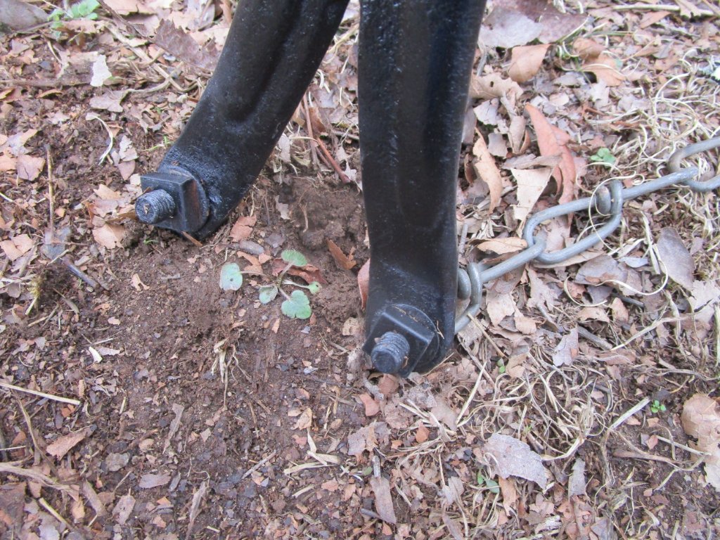 Just finished up a campfire tripod for cooking with a Dutch oven. We have started vintage camping with the T and showing the rig at various "overlanding" events. Showing the T with our vintage camping setup has been very well received at the modern 'overlanding' events. Been needing a tripod for our Dutch oven for a while, so I made one out of 3 very bad rear radius rods and a wood wheel hub spoke clamp ring. The chain is old well bucket chain from that time period and the hook is a very old "blacksmith" made item I had in the " rusty treasure pile". It folds up nicely and is the same length as the rear bumper on the 27 touring. When wrapped in a piece of canvas tarp, it and our tent poles will ride very nicely tied to the rear bumper.