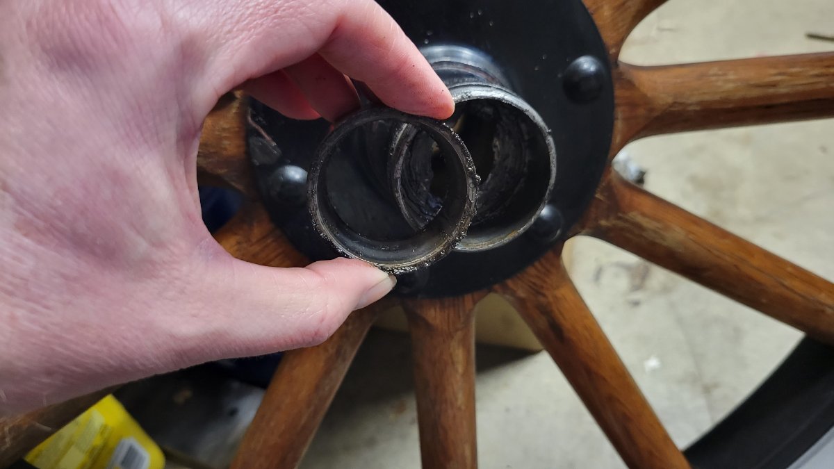 I had one hub that was so bad I just replaced it. New hubs are available for wood wheels. http://www.modeltford.com/item/2803.aspx