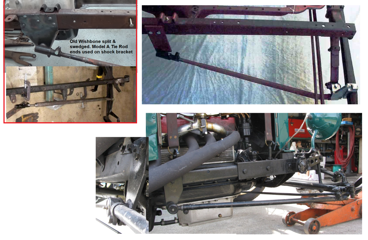 -This is an interesting design where the bracket on the frame is the wishbone cap from the pan and the rods fabricated and swedged into the ball end of a wishbone.