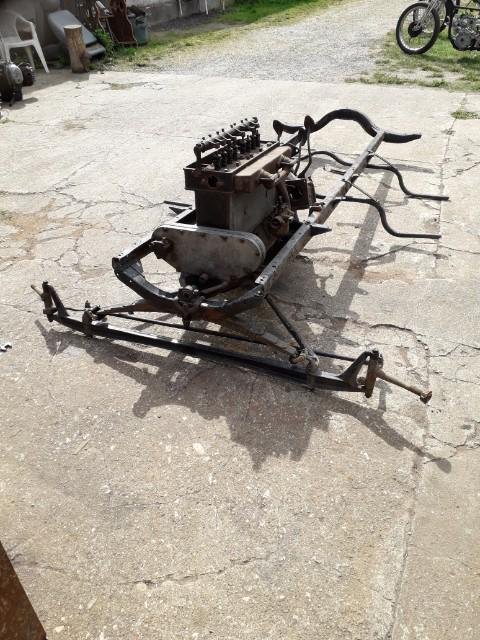 That is a strange engine André, does it use the T transmission ? Seems like it in the picture with the chassis. Early overhead valve, Peugeot maybe? Looks French in a way