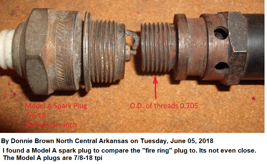 I tested the "fire ring" plug in a Model T head. The threads just fall into the hole and are a "sloppy fit" (hillbilly technical term). So they obviously do not fit a Model T