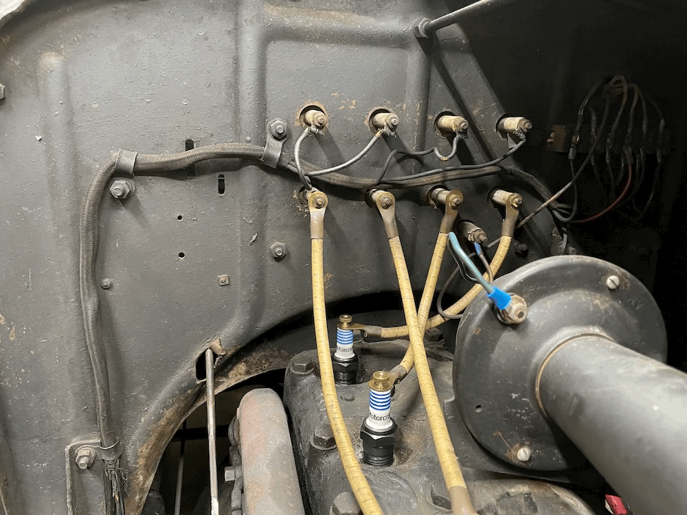 Update, and more mystery. I checked my unrestored 1924 roadster firewall and it has those 2 holes with nothing going thru them. My choke and mixture go thru other holes in the firewall and spedo cable goes thru the floorboard. The floorboard has a relief area to clear the holes.