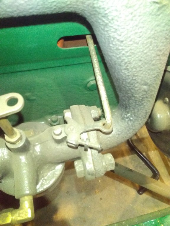 Well I finally got those tiny ,teeny, iddy bitty,soft as peanut butter, ,pins drove into the little cast pieces that go o the handle rods, I found the carb throttle goes towards idle,and goes wide throttle.but does not go far enough to go to low idle.