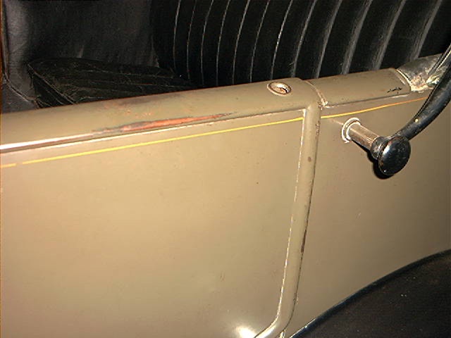 There were several stripe styles used on 26-27 closed cars. Jim did the one I think looks best, down the pillar and then follow along the bottom of the pillar. Another style the stripe goes down the pillar and stops. Another has the stripe go to the pillar and continue across the front under the windshield (my least favorite). And then there is the stripe that ends at the front of the door, neither going down the pillar or under the windshield, dead simple, but a little unfinished. Stripes on 26-27 closed cars really make all the difference for a paint job. Nice job Jim, well done. Dont know how you got those wheels and spokes all the same.