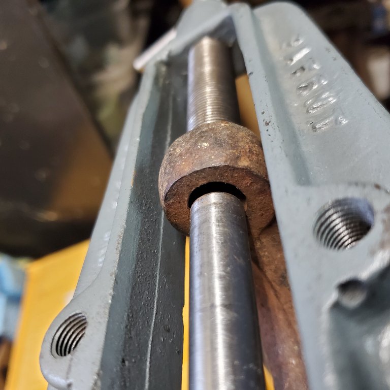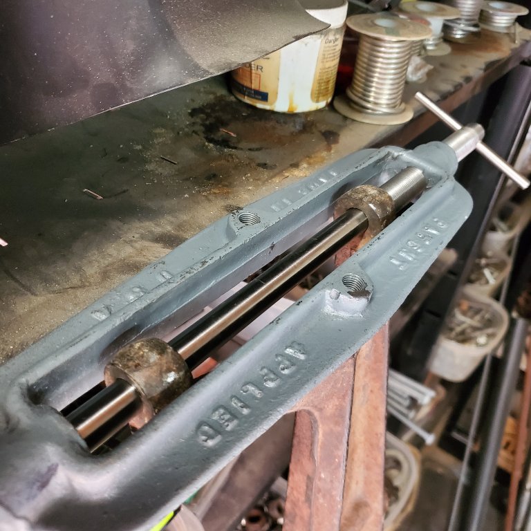 I think I'll make a thinner rod and pilot to fit an axle that doesn't need the threaded hole repaired. That way I can clean up the thrust surfaces without disturbing existing threads.