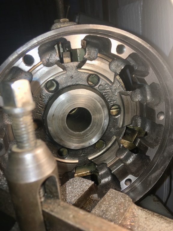 turned brake drum mating surface and bored brake drum bushing. Not necessarily in that order but the pictures wouldn’t line up right . Oh well