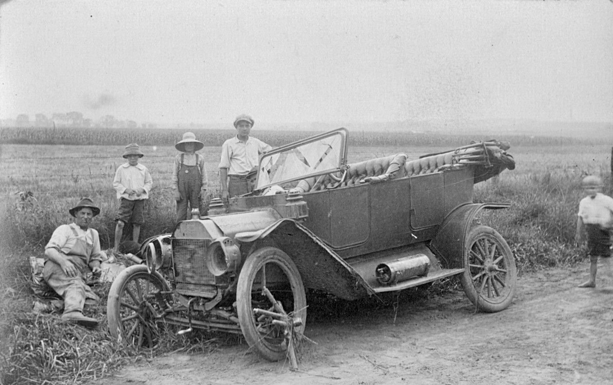 #1 - I agree with Jim, probably not a roll-over, but given the era and the environment, I doubt if the driver rear-ended another vehicle. Looks to me as if he hit a yearling steer or heifer (maybe a deer ?) The impact seems more to the driver's side - putting along, the critter could have darted in front of him suddenly (they'll do that !). Hit, they tend to come up, thus the windshield damage. Also not unlikely it wasn't fatal for the animal, it probably ran off.