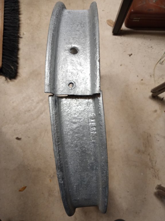 Is this 21" split rim worth salvaging? it is sprung and even when ends are spread apart and are butted together the rim is not straight. The hole and the threads for the locking bolt are oversized and would have to be repaired, but the rim has been galvanized and no tire mounted since.