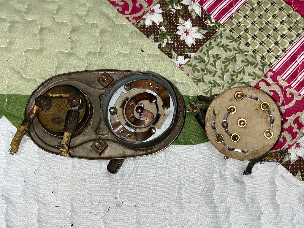 Bending the contacts isn't advisable unless its necessary. The shine on the contacts tells you which need a bit of lift. They need to be cleaned (not polished) I pointed to one that looks dirty but that could be something on the switch plate . The ? mark on the tracking looks like some kind of grease, not good & unnecessary. The friction points, so to speak are on the underside of the disks with the contacts to the steel cup when be rotated. The underside of the small inner disk (it makes the contact from MAG or BAT to the COIL) shows no wear after many years of use. That shows why its unnecessary. When I take a switch completely apart I do put a very, very light coat of silicone grease on the metal surface of the cup.