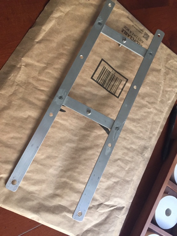 I am yet to find an era bracket to solve the issues with mounting a 1915 CAL plate to a 1915 bracket, so I made my own. Very simple, but effective. It is strap aluminum riveted together. It also centers the plate with the tail lamp and moves it away from the exhaust pipe.
