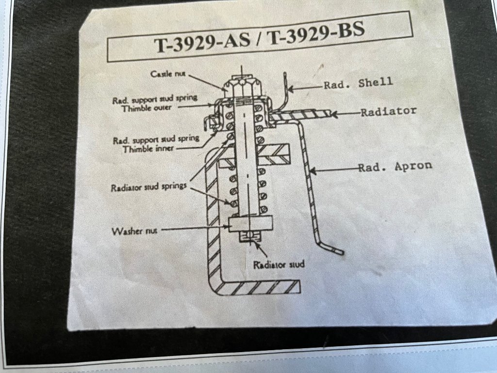 You are describing '26-'27 parts...you've latched onto a faulty drawing at the beginning of your post, and now are posting a drawing which shows how earlier radiators go together (with the apron and shell, both going over the thimble). That is NOT your setup.