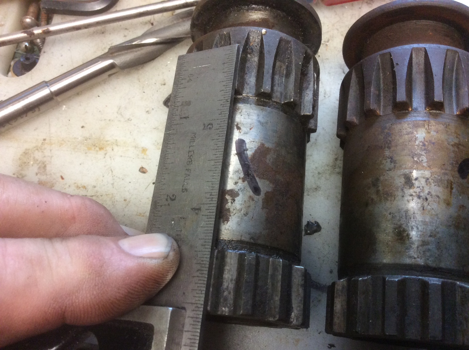 I have a couple friends that are currently doing a Ruckstell rebuild right now. I talked to him this morning about an issue with the sliding gear on his unit. It appeared to the eye to be in excellent, almost unused condition, but would not slide easily from one range to the next. He said the gear teeth were not in line, And thought perhaps this one was twisted. I thought that too was probably the issue, as I figured when these were Hobbed out, they were probably in line. I dug out three gears here and they make more questi9ns now than answers. All are original, one is NOS , one is very nice original and the last one is shot. 2 have the gear teeth in line, and the 3rd, the teeth are offset a half tooth. . The one marked NFG is what they start look8ng like before you head into a neutral situation. As you know, a Ruckstell in good operating condition will not have a nuetral. I’d love to hear thoughts on these issues.