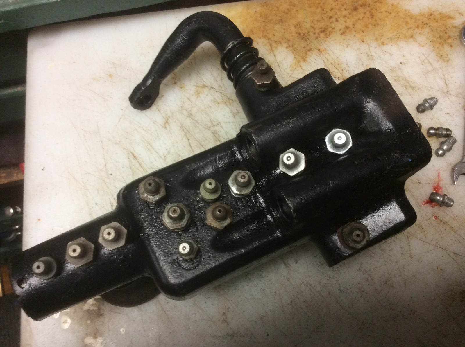 this last version looks much better than the one with only 3 zerks. Perhaps it would be even better with 13 grease cups. At least it would be more original than these modern fittings.