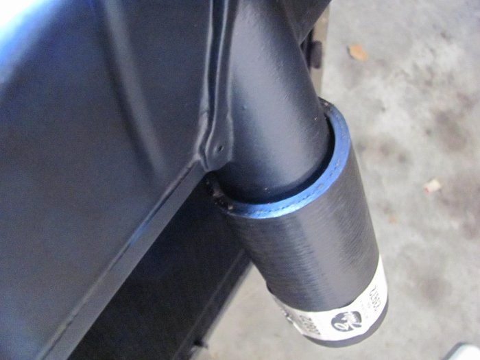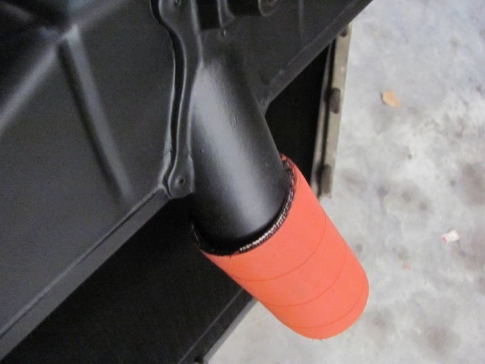 Last one I got from Gery went on a 26-27. I was able to use normal red hose but do recall a fight, where the solution was to slide the red hose up high on the neck, guide the lower on the head outlet as radiator was installed and then wiggle down and clamp all up…no leaks, no rtv. Pictures follow