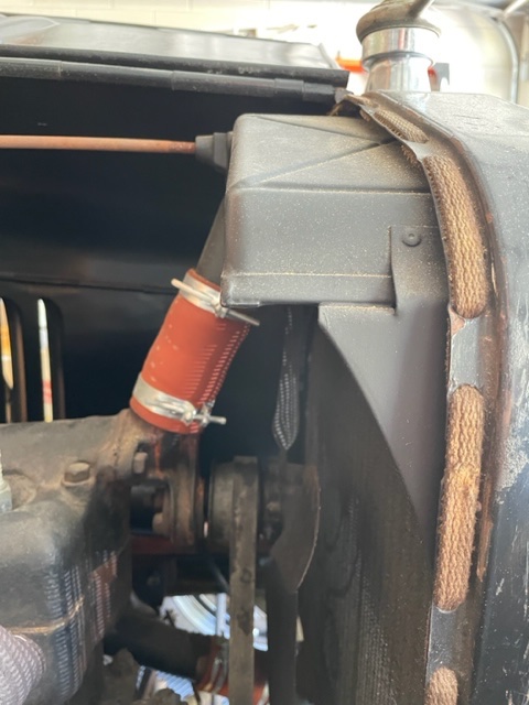 I’ve got what may be the last new Berg’s radiator, that I bought from him last winter just as he was shutting down the business. The box arrived, I peeked inside and put it away til needed. Well, opened it up today to install on my ‘26 RPU and saw that the upper hose neck is very different than all of my other radiators. Not only does it take a much longer hose, but the alignment to the outlet on the head is pretty far out of line. I’m definitely stuck with it at this point and am just hoping that I can get that 2” hose to clamp tight enough to not leak. It’s a high, flat tube rad on a ‘26 high head engine with a ‘26 style fan hub. Has anyone else experienced this and had success with the hose being stressed and not leaking?
