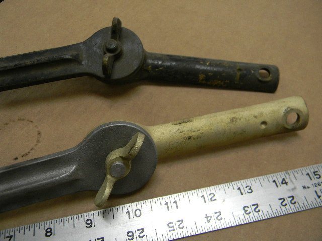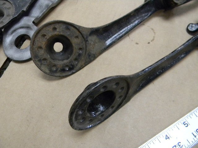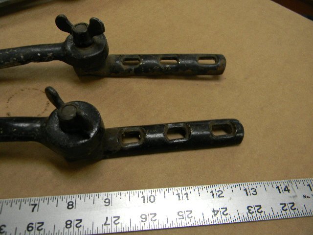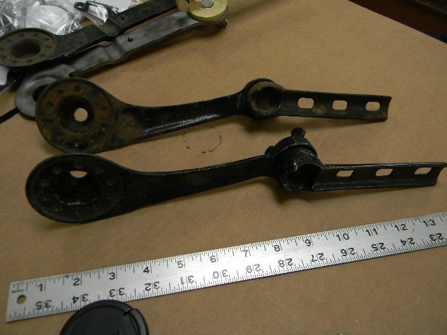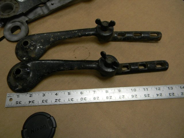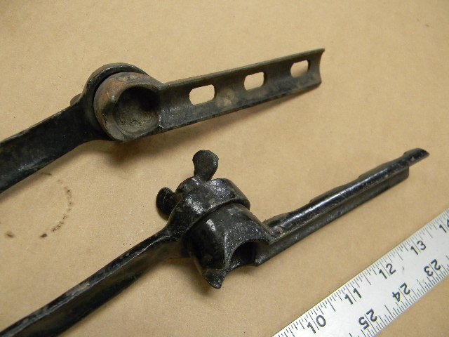 Going through some more original parts I ran across these odd and large car windshield hinges one is brass and steel the other all steel, anyone have any ideas? Bob