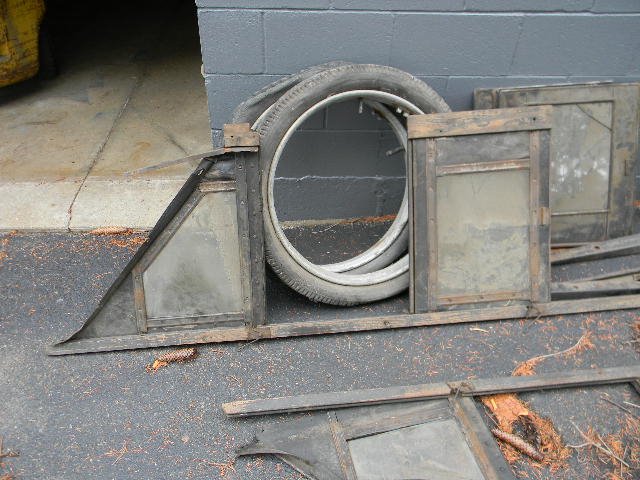 Appears to be the Calif. style sliding glass side curtains set for T touring. These used wood frame members to secure the glass, which slid down to provide ventilation.