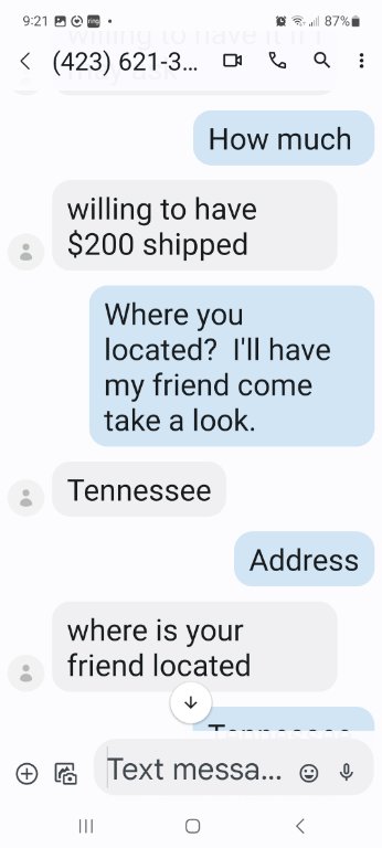 The picture is from a MTFCA post by Kim. He claimed to be from Tennessee. Would not provide a name or address. Would only accept payment through Venmo. No doubt fraud. Putting it out there. Don't want anyone here to fall victim to these subhuman bottom feeders .