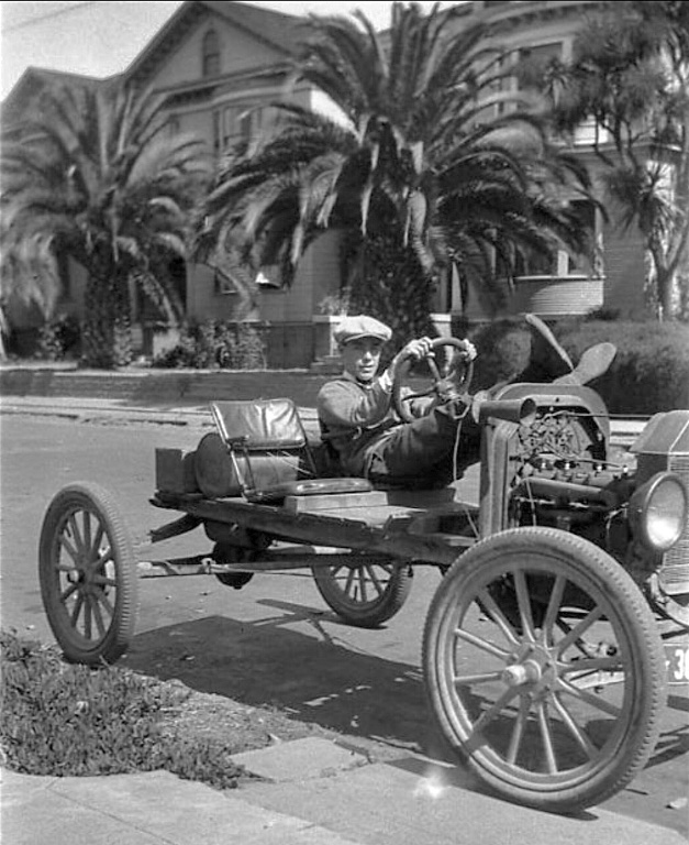He was a very skilled machinist, and for a while worked at JPL in Burbank. He had retained some of the parts he worked on, that were never used on spacecraft, and showed them to me. They were spares or duplicates, but once the spacecraft was assembled, they were just regarded as scrap, since there was no further use for them. He was close friends with the Eastwood brothers, who also worked at JPL. He didn't like having his picture taken (superstitious) but he let me take a photo of him with my Model A engine as we were finishing it up, which I interpreted as a great compliment. He refused all offers of pay for his services, only allowing me to buy him lunch at a local Carl's Junior. I only saw one other picture of him, taken at the dry lake beds in the 1930's. He frequently drove his beautiful black 1932 Ford V-8 Coupe to my house when he was working on my Model A engine, which attracted a lot of neighborly attention. He was then nearing 100, and he was as sharp as ever. I have always been hoping to find a pic of him at the lake beds, doing the racing he loved so well.