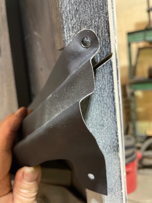 Though the location is pretty limited to a narrow band, I followed what the original did and let the lower/forward edge of the metal go flush with the front edge of the wood: