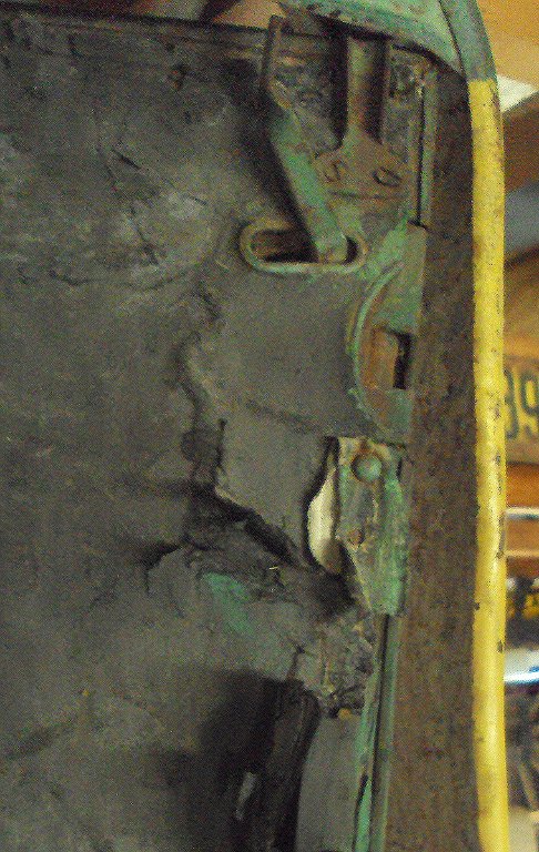 The interior door panel on my 1923 runabout is falling apart from use. As most of you know it’s a dense black cardstock base covered with a thin textured outer paper skin very much like that used in musical instrument cases, camera bodies etc. There is a oval cutout relief near the lock assembly that is trimmed with a thin steel edge. My question is … was there a similar steel edge on the oval hole for the release? Does anyone have a complete panel in good condition as a reference?