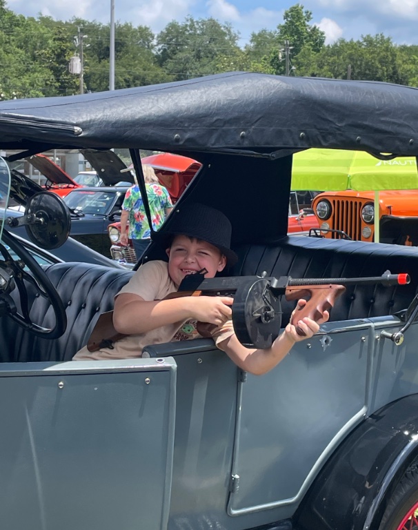 One of his favorite movies is Oh Brother!. So had my trusty 'Chopper' on board, and he repeated the movie line...." I hate cows" and he burped the Tommy gun!