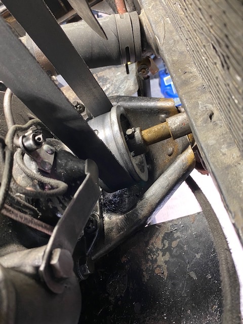 Since my T is a RHD Canadian and the timer rod goes to the bottom of the timer instead of the top, the usual guides don't easily work. And I also installed a split aluminum pulley on the crank, which can be put on in two positions 180 degrees apart by the way.