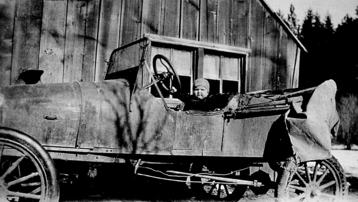 Appears to be a rather early '09 with covered running board with the brass trim too. Zooming in can see the third pedal shaft, driver's foot on that brake pedal so it won't roll.... so don't think it is really early car.