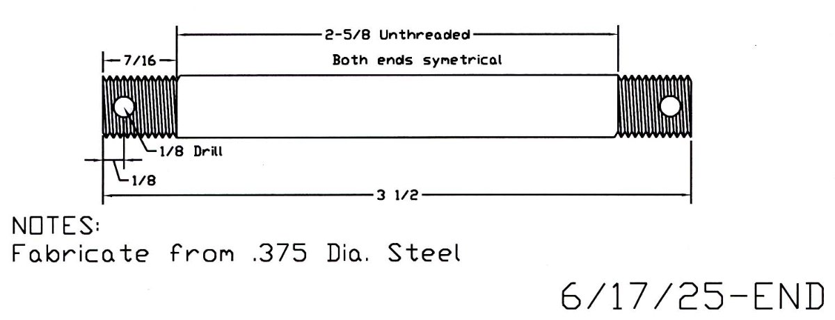 According to the drawing the radiator stud should be 3-1/2" long with the center of the cotter pin holes 1/8" from the end, the ones I received from Lang's have the hole 3/16" from the end, I would gain an 1/8" if they were correct.