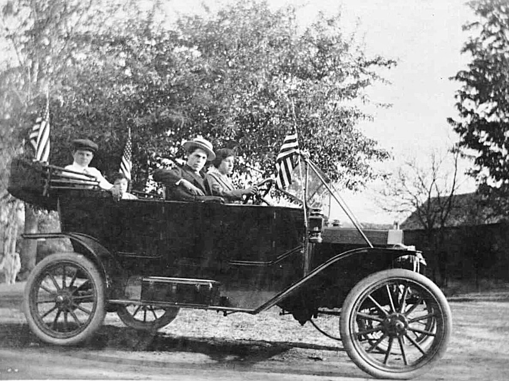 In the 10th picture down from the top, with the girl standing on the running board of a well worn 1926-27 T Coupe in the early 1930’s, proves that kids had to talk on their cellphone’s all the time back then too, just like they do today.