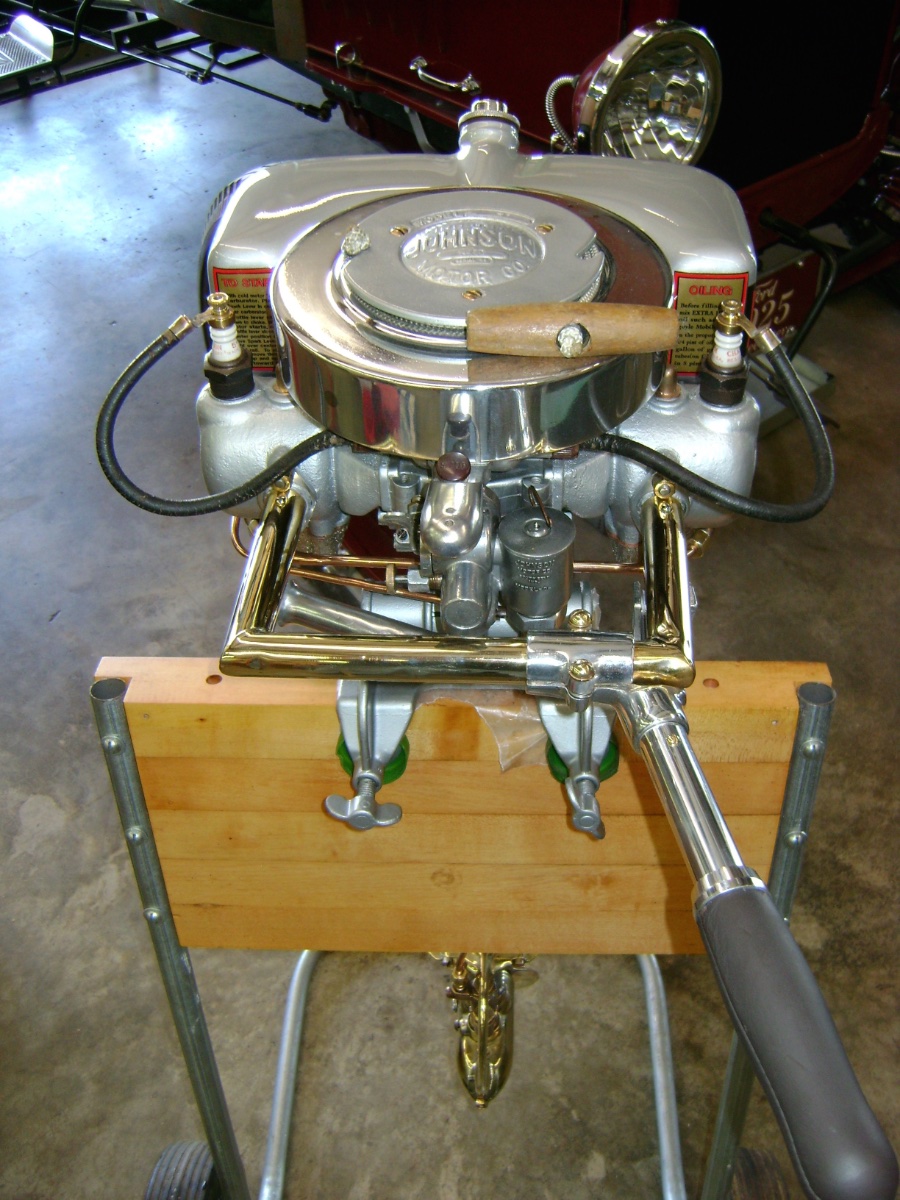 That Johnson motor looks like a 1930 or so Model A Johnson. I have two of them., 1932 and a 1933.