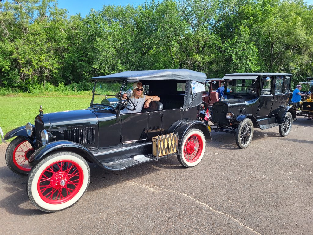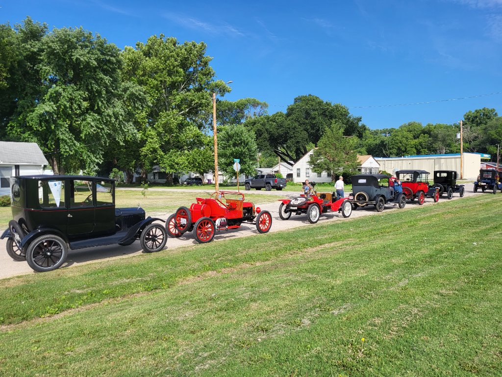 If you are on Facebook, look up Marcia Endebrock Rozell. She has posted many photos and a few videos in an album titled, "Album 2023 Model T Ford Club of America National Tour". She is the Director of Visit Manhattan Kansas.