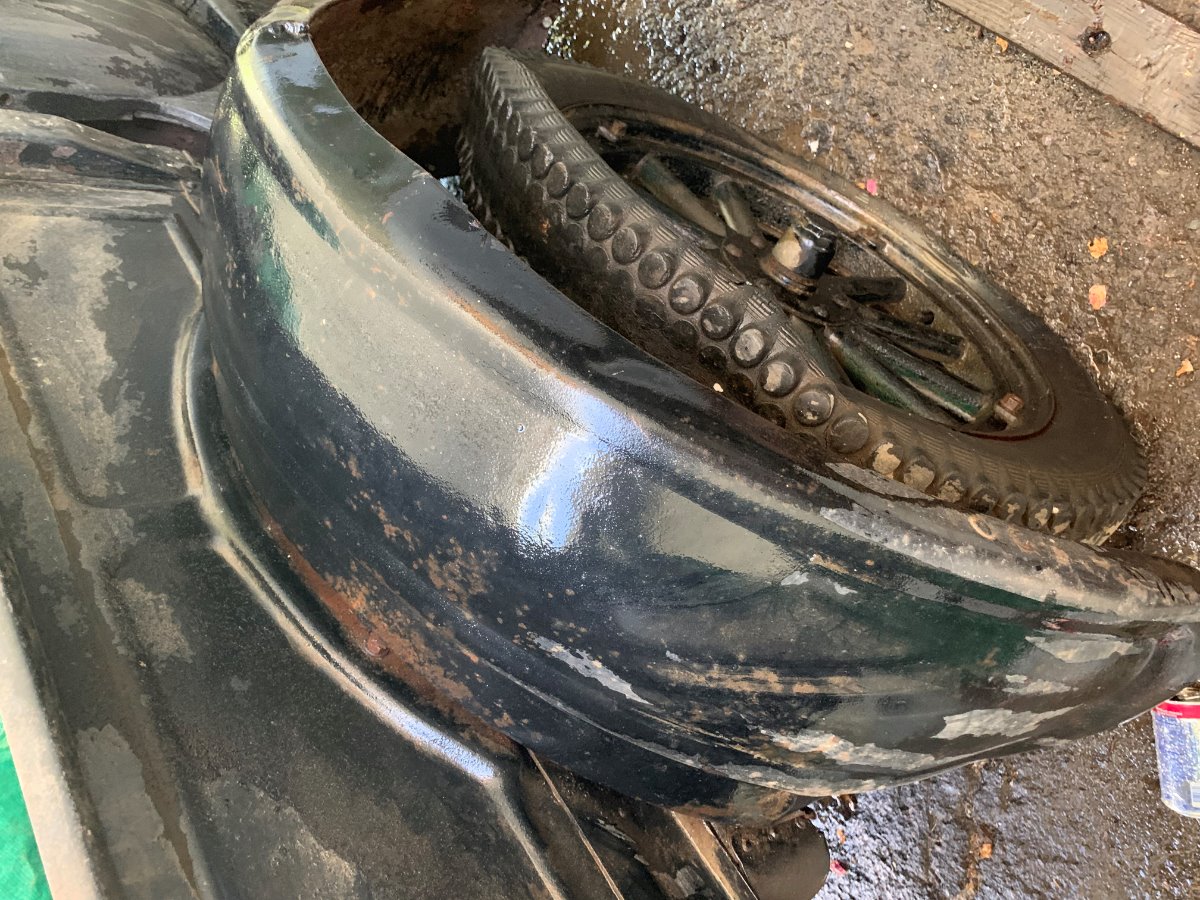I have also discovered differences where the trapezoid shaped wood blocks mount either side of the tank. Early bodies have a sheet metal tab riveted to the stamping whereas later bodies have a turned out tab integral to the stamping.