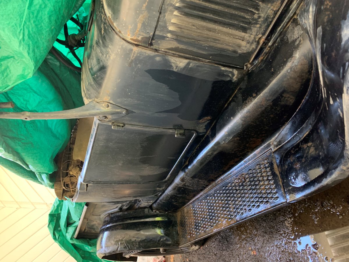 Update: The little pick up is rolling again on good rubber!! Thanks to Robert Weitzel and Erik Barrett. Not running yet, but cranks over and has compression!! The rear end is toast. The front axle is in backwards and shot, the spindles are flopping around. It is now loaded into FJ's trailer. I am not yet sure when it will arrive here?
