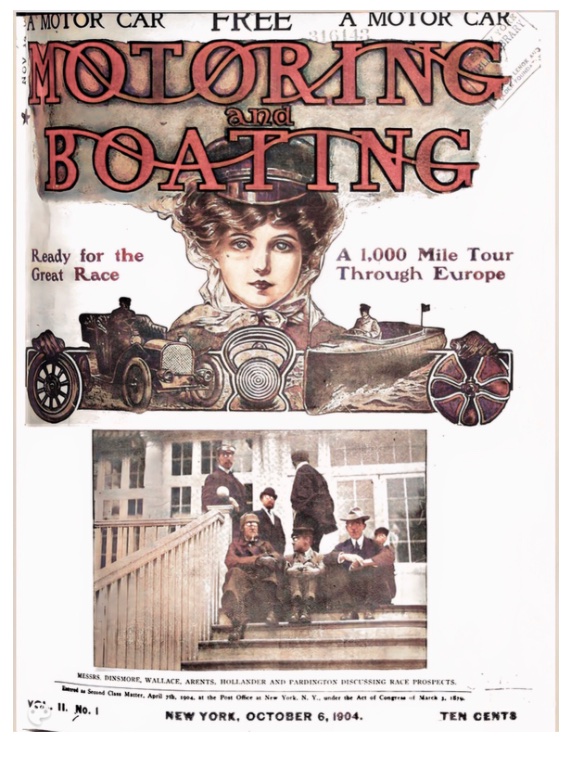 Below: Magazine cover, "Motoring and Boating," October 6, 1904: