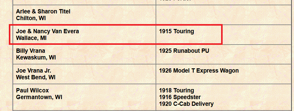 I believe it’s Joseph Van Evera and he’s listed with the Model T Flivvers in Wallace.