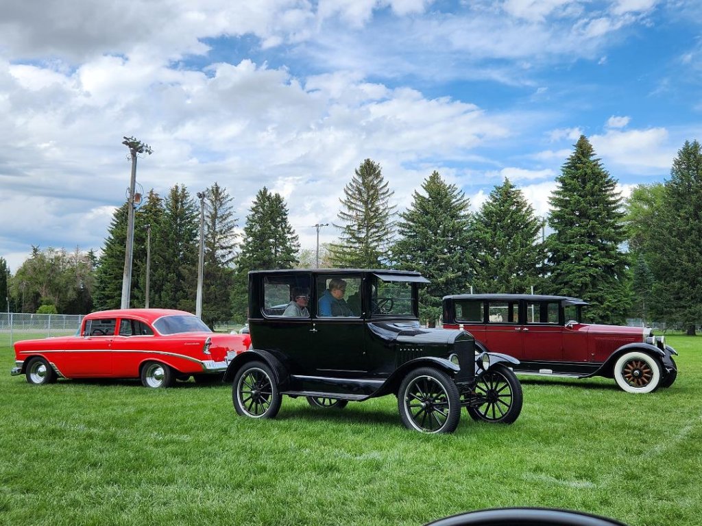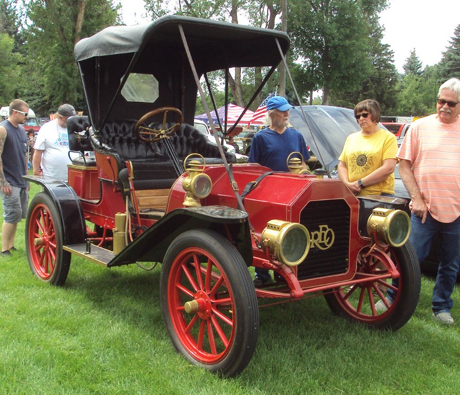 Our friend Joe brought his 1908 REO... and his 1903 Rambler and 1928 Buick. Norm brought his 1926 Buick. We used to travel 1000+ miles a year around Montana in it and my Speedster each Summer. I was pleased to trade my Harley transmission for two Hayes wire wheels. Now I need to find two rears. The weather was threatening but didn't sprinkle too much. We had a good turn out and visited with many friends. A Forum visitor from Montana was there and I had a good chat with him. He owns 1911 and 1914 Tourings which I had seen 50 years ago in Virginia City, MT. It was good to get out of the shop and enjoy the weekend.