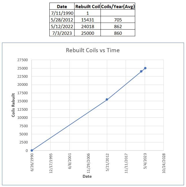 In thirty-three yeatrs of rebuilding Model T ignition coils i completed the rebuild of my 25,000th coil.