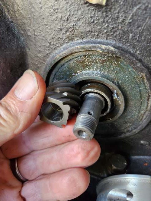 The pin for the Cam to Distributor gear sheered- and the gears are badly worn.