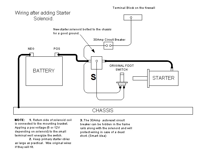 Some questions about your wiring. I have assumed that your started solenoid switch is oriented the same as is the images I added. That is the heavy wire is connected to the starter.