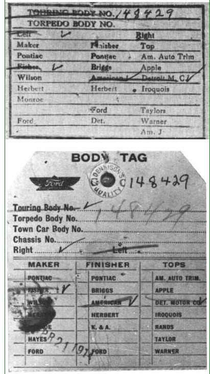 The link below has a photo of a ford factory winged ford paper body tag showing American was one of the ford body "finishers" as opposed to being one of the ford body manufacturers.