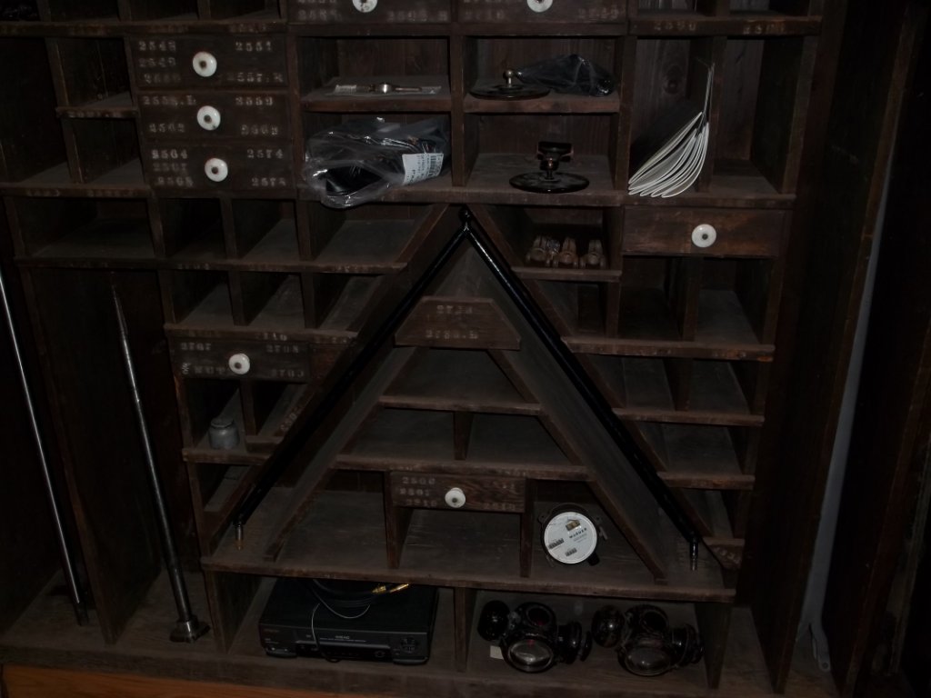 I have not made an attempt to place the original parts in the bins as this would be an monumental task, but I have placed some original parts in the bins for display purposes. It would be interesting to find other shelves that match these shelves.