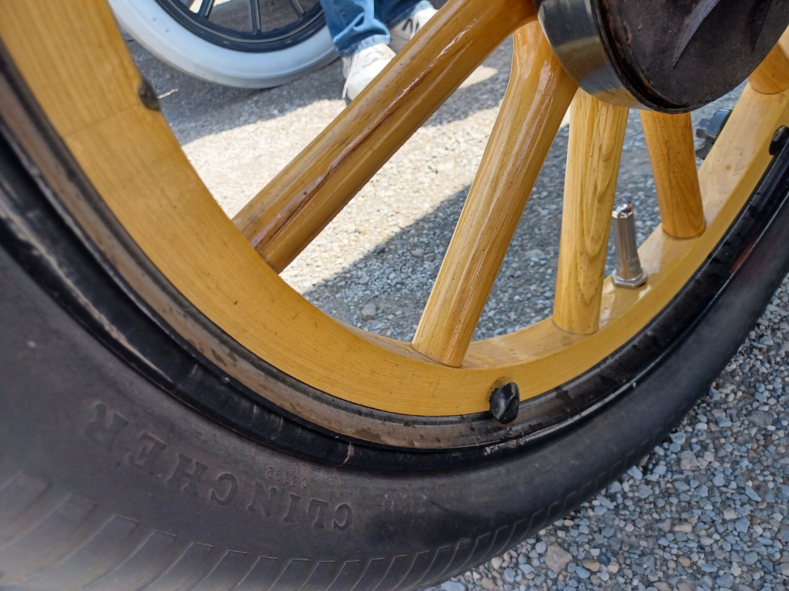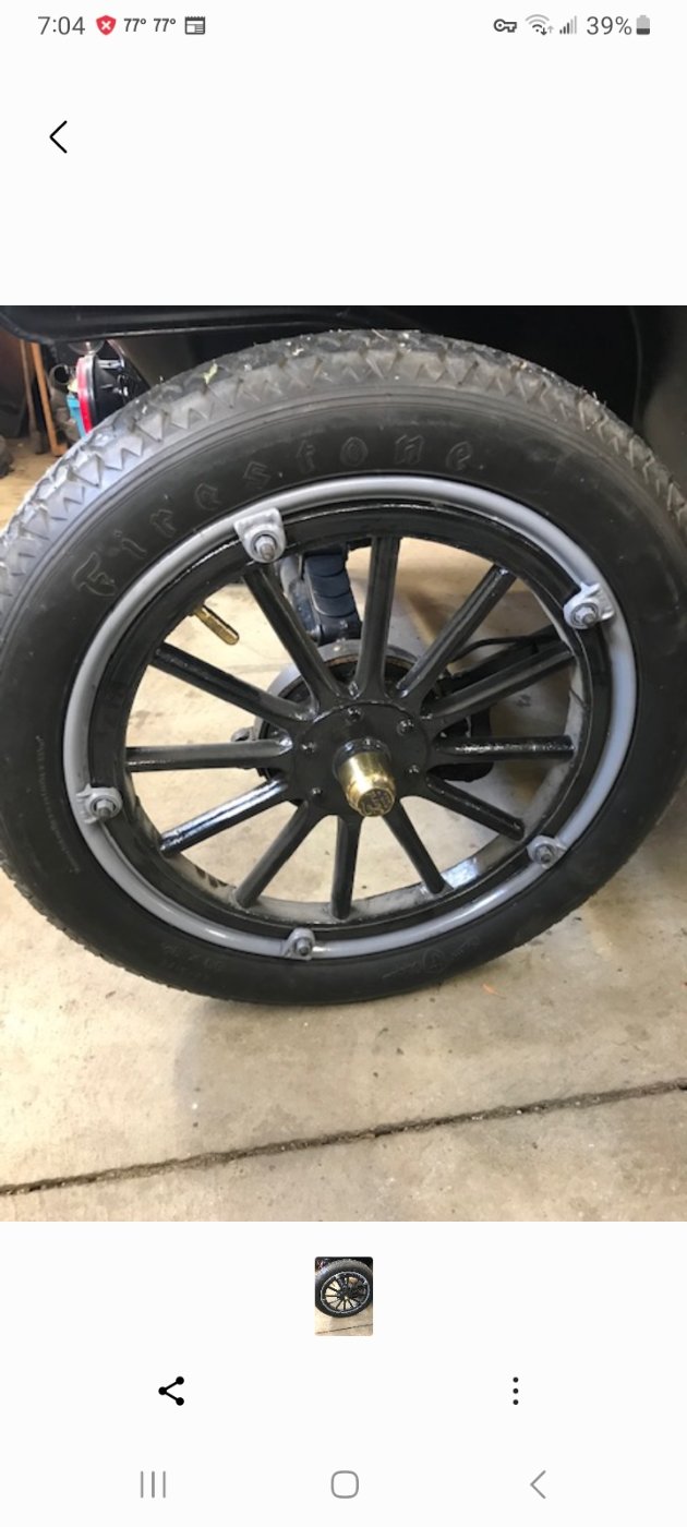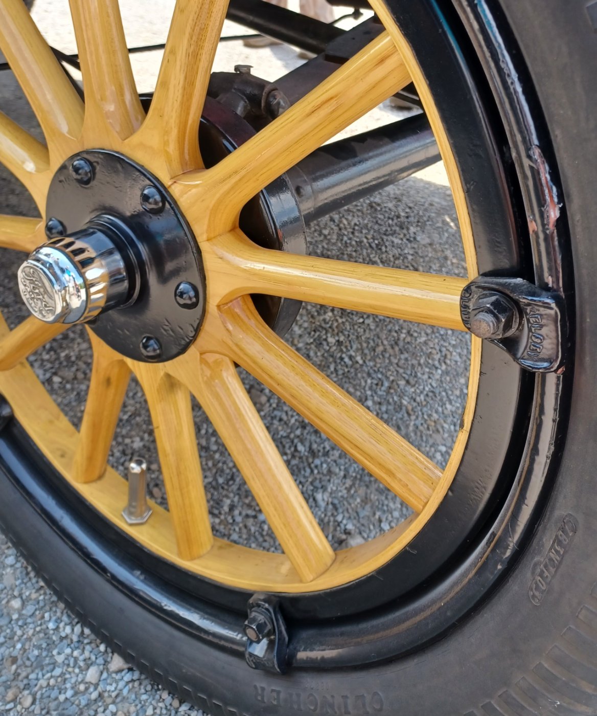 One of our club members brought his '17 Runabout to our lunch cruise. We've seen his wheels before but never paid that much attention to them. Look close at what seems like "dual-felloes"...outside is different from inside the fellow and we've never seen this style.